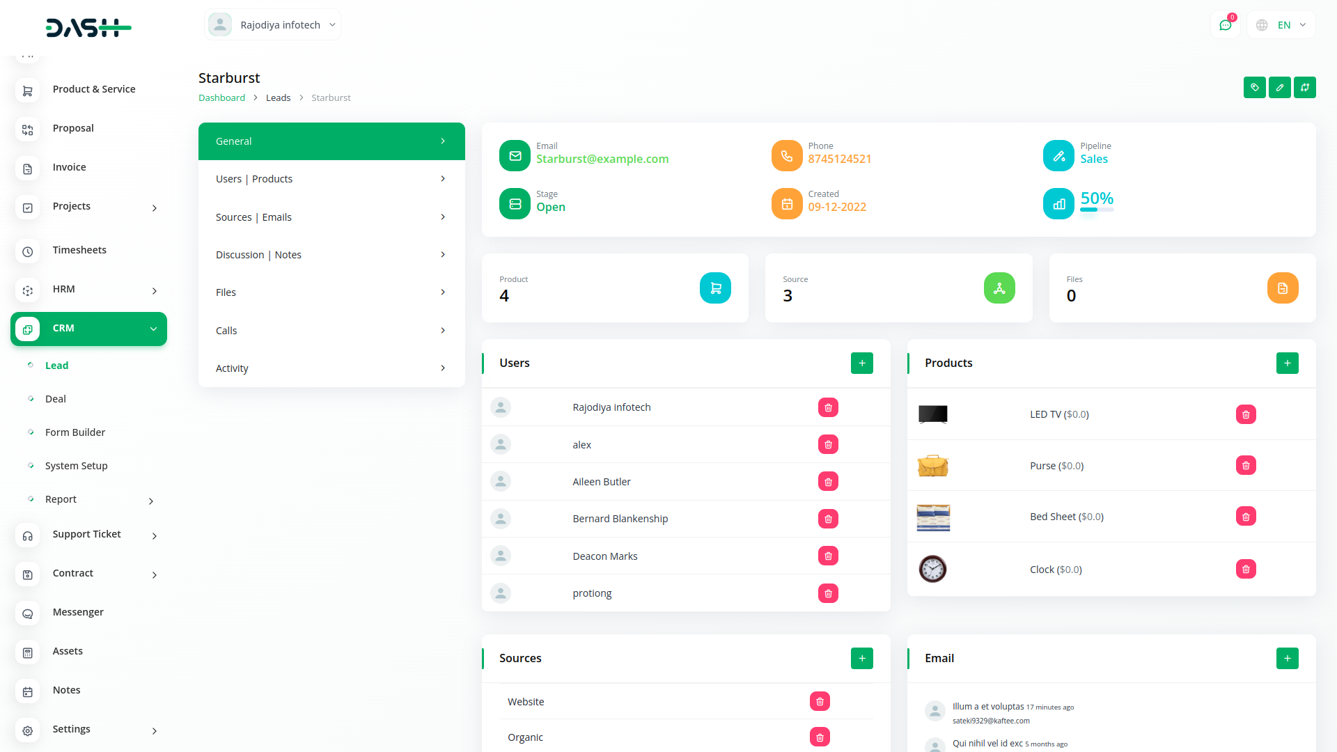 Get an actionable analysis of all your leads, deals, users, invoices, and products - in one interactive dashboard. Create and implement effective business plans, set a maximum number of deals, payment options and do so much more.